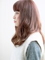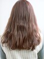 Aラインの重ためスタイル。 色は、ドーリーカッハ゜ーで可愛らしさ。 前髪は、少し透けかんを作り、短めの眉上。 毛先にゆるウエーブで柔らかさを。