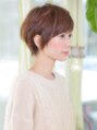 似合わせ小顔カット。大人可愛い前下がりのふんわりショートレイヤースタイル。似合わせカットお任せ下さい!表面にシークレットレイヤーを入れ部分パーマをかけることによってより動きのあるスタイルに。カラーはアッシュブラウンで透明感を引き立てます。