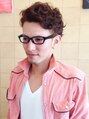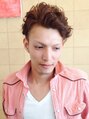 ツーブロックのショートスタイルに外ハネの強めパーマをかけてワイルドに♪前髪は立ち上げてセットするのがオススメです!!カラーは明るめのプラチナをチョイス♪
