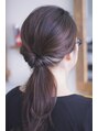 上部の髪と下の方で繋げないで、独立した動きをだしています。 襟足数本の細いハイライトで、結んだときにアクセントをだしています。