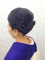 和装アップスタイルトップからサイドにボリュームを出しながら流し 襟足はツイストでねじりをミックスしたアップスタイル