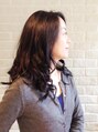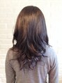 広がりやすく髪を落ち着かせるためにレイヤーは顔まわりだけに、毛先がうすくならないようにスライドで質感を調整。バランスを見て、毛先にはパーマを少し。