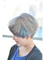 カットベースはフロントの重さを残したマッシュスタイルです。カラーはブリーチ後、ナチュラルアッシュをのせ、ポイントで左サイドのブルーのグラデーションを施しました。個性的なヘアスタイルが好みの方にオススメです!