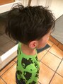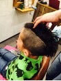 サイドを大胆に刈上げ反対サイドにボリュームを出し流したスタイル。モヒカンにも近いがセットをしない場合は可愛い子供らしいスタイルに!!