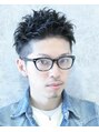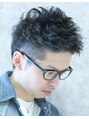 2ブロックで毛先が束になるようカット、カラーはブラックアッシュ。