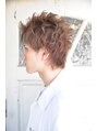 ハイトーン×ツイストパーマで抜け感があるウルフです! 根元はくらめにしてブリーチ後アッシュベージュをON ツイストさせてパーマをかけているので束感が出やすく簡単に無造作スタイルが完成。攻めたいメンズにオススメです♪