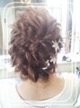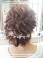 ウェディング向きのアレンジ!波うちに巻いた後にロープ編み ツイスト をルーズにランダムに入れます。一度しっかり作ってからラフに崩すので崩れそうで全く崩れません。アレンジのダウンスタイルにも下を下ろせばチェンジできるのでお色直しも最適です!