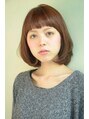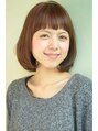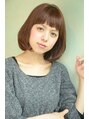 前髪が短めのボブスタイル。 ローグラデーションで重めにカットします。 毛先はコテで平巻きにし、あごの下にゆるいカールがたまるように。パーマをかけてもOK!