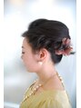 サイドはツイストでねじり、ルーズなアップスタイルボブラインでも 綺麗にアップできますカジュアルすぎず、キメ過ぎないスタイルが人気です