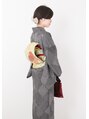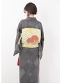 モノトーンの着物は年齢問わずに着ていただけます。爽やかにグリーンの帯には、赤の小物で全体を印象的に。着物一式レンタル可能です。【荻窪駅アマニエン】