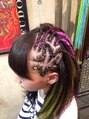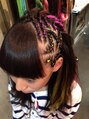 コーンロウで星を作りました♪カラーエクステを混ぜております♪