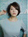 定番の前下がりボブに毛先にパーマをプラスして、抜け感のあるマニッシュなボブに♪カラー赤みを抑えたグレージュアッシュで柔らかい雰囲気に☆