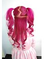 もこちゃんです。今回はブリーチをお休みしてピンクのハイトーンでリタッチ(P12)既染毛は少し落ち着いたピンク(P8)でベースを作り、全体をヒューシャショック(10%) アジアンブラック (5%)をMIXして染めました。