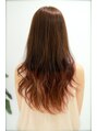 前上がりのローレイヤースタイル。パーマはデジタルパーマで大きめのロットでフォワードとリバースでミックス巻。カラーはグラデーションカラー。ピンクベージュベースで毛先にはピンクベリージュを、オン。元住吉駅店
