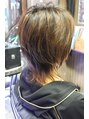 ウルフカットがベースのトップにボリュームがあり、前髪はアシンメトリーに、束感を大事にカットしました。頭のカタチを綺麗に見えるように骨格補正カットでカタチを綺麗に見せています。