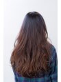パーマをかけて、重たく見えがちなロングヘアーをニュアンスロングに。あご下に大きく動くパーマをかけ、仕上げに4カ所くらいアイロンでパーマとは違う動きをmixさせるといい感じ!軽めのグラデーションカラーで少し毛先をハイトーンにし動きをだします。