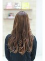 毛量の多いロングヘアーに少しの無造作カールをつけることによって軽さを演出しています。パーマはホット系のパーマでスタイリングも簡単に!