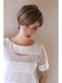 長めの前髪が一見モードでクールな印象のショートスタイルです!カラーリングは明るめのアッシュ系ブラウンでモードになりすぎない柔らかさを演出!大人可愛いクールショートですね!