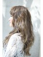 外国人セレブのような透明感のあるカラーと、髪をかき上げた時にリキまないクールさが感じられるラフなロングレイヤーウェーブ。(石川町 元町 関内 山手 美容室 marengo マリンゴ)