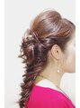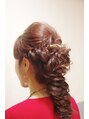 トップに少し高さをだし、サイドの髪はねじって後ろでとめ、余った毛先でカールをだします。襟足の髪でフィッシュボーンを編み、少し崩してルーズに仕上げます。