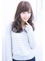 暗めのアッシュブラウンにプラチナシルバーをミックスし、透明感を出しました。眉下で流れる前髪で可愛さをプラス!