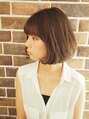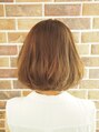 顎下ラインの前下がりボブにカット。後ろはグラデーションを重ために入れます。カラーはブラウンベースにハイライト、ローライトを入れて、ボブに立体感を出します。
