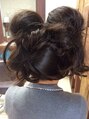 7歳のアップスタイル。他の子とカブらないし、後ろから見た感じも可愛いスタイルです☆