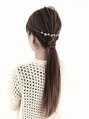 低めのポニーテールに、サイドは編み込み。あえて毛先は巻かずにストンとおろしてみました。