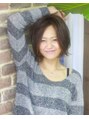 アゴラインのショートボブにゆるいニュアンスのウェーブをつけたスタイルです☆作り込み過ぎない無造作な雰囲気が可愛い♪水パーマで髪に負担をかける事無く、潤いのある質感に◎パーマで可愛くなりたい方は、ぜひお気軽にご相談下さい!