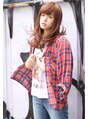 オレンジ系のカラーで可愛さをだしてラフな質感でカッコ良さを演出☆顔まわりにやわらかいカールがでるようにレイヤーをいれて小顔を引き立たせます☆