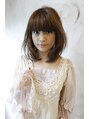 厚めバングで女性らしくしました。クセがある方におすすめのミディアムスタイルです。艶のあるベージュ系で染めました。