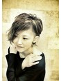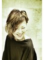 前下がりのショートレイヤーボブ☆あごに向かって前下がりにサイドのライン強調!左サイドの内側をツーブロックに刈り上げ(^^)パーマで柔らかい雰囲気を出し、カラーはハイライト、ローライトで立体感を♪