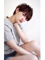 前髪長めのメンズライクなショートスタイルハイライトを全体に入れて、束感と透明感をだしてます。セミウエットスタイリングで今っぽさをプラス。