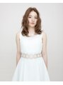 エレガントなビックカールで海外セレブのような雰囲気に。鎖骨下ラインのワンレングスにトップに独立したレイヤーをいれる。平巻きゆるパーマでふんわりと。