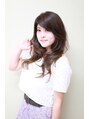 前上がりのロングレイヤーで顔周りを短く切ることでスタイルにメリハリをつけています。前髪は、小顔に見えるように長めに残しました。