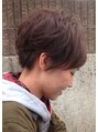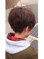 ベースは前下がりのマッシュレイヤー。襟足はグラデーションで、丸みがポイント。前髪は目の下くらいに設定し、斜めにカット。トップはレイヤーを入れすぎず、全体のバランスを見ながら量感調節。