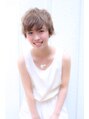 【今泉】エアリー感あるノームコアなショート。夏はハイトーンなベージュカラーに。ダブルカラーで透明感を。ドライでもセミウェットでもいけるショートスタイル。似合わせカットでどんな方でも挑戦できるショート。ランダムカールでオシャレに。