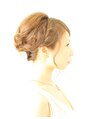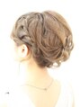 両サイドのねじりあげた部分を緩めてルーズに。トップをふんわりボリュームを出して後ろでまとめました。