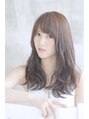 ニュアンスロング 斜めバングで大人かわいい感じ ラベンダーベージュ ツヤツヤ セミウェットな毛先 ふんわりSカール ナチュラルな動き ほどよいルーズ感 32ミリでMIX巻