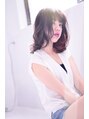 顔回りの表面のみレイヤーを入れた重ためのカットラインにゆるいウェーブを巻きました。やりすぎないラフで無造作な鎖骨ミディは夏のファッションのも相性◎