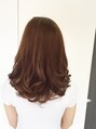 まとまりのよい重めミディアムスタイルを、イノセントカラーで透け感が出るようにしました。巻きやすく、アレンジもしやすいですよ♪