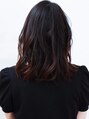 ミディアムのローレイヤーでカットします。前髪を長めにカットして流れが出るようにします。カラーは暗めのカラーにグラデーションでアッシュブラウンを入れます。ハネやすい方や伸ばしかけの方にオススメです。