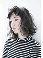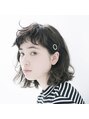 髪本来の美しさを生かしたシンプルでヌーディなミディアムスタイルです。ゆるいパーマとショートバングで可愛さの中に芯のある女性像を表現しています。