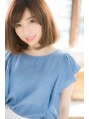 らかい毛先のカールと清楚なイメージのボブになっています。斜めわけの前髪が大人っぽく、甘さの残るボブに仕上がっています。