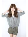 伸ばしかけの厚めバングを、ふんわりとセンターパートで分けたニュアンスロング。レイヤーを入れる事で動きが出ますが、軽すぎず程よい重さも残しておきます。
