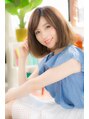 柔らかい毛先のカールと清楚なイメージのボブになっています。斜めわけの前髪が大人っぽく、甘さの残るボブに仕上がっています