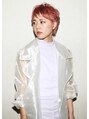 ハイトーンにブリーチ後、ミルキーピンクをオン。透明感のあるピンクがショートスタイルを一層個性を引き立てます。