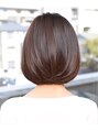 シンプルなボブですが、前髪や表面に少しレイヤーを入れることで柔らかな動きが出て、クールな雰囲気の中に女性らしさも表現しました。