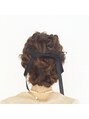 ぽこぽことボリュームのある編み込みをカジュアルにまとめてリボンのゴムをアクセサリーとして飾りました。
