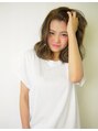 アッシュブラウンベースに細かくハイライトを入れてあります。鎖骨ミディ アップバング